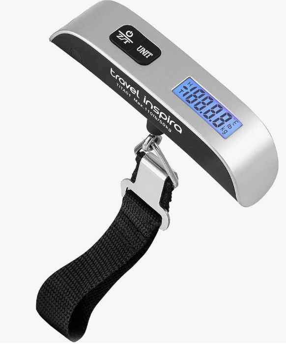 travel inspira Luggage Scale, Portable Digital Hanging Baggage Scale for Travel, Suitcase Weight Scale with Rubber Paint, 110 Pounds, Battery Included https://amzn.to/3KSRVx8