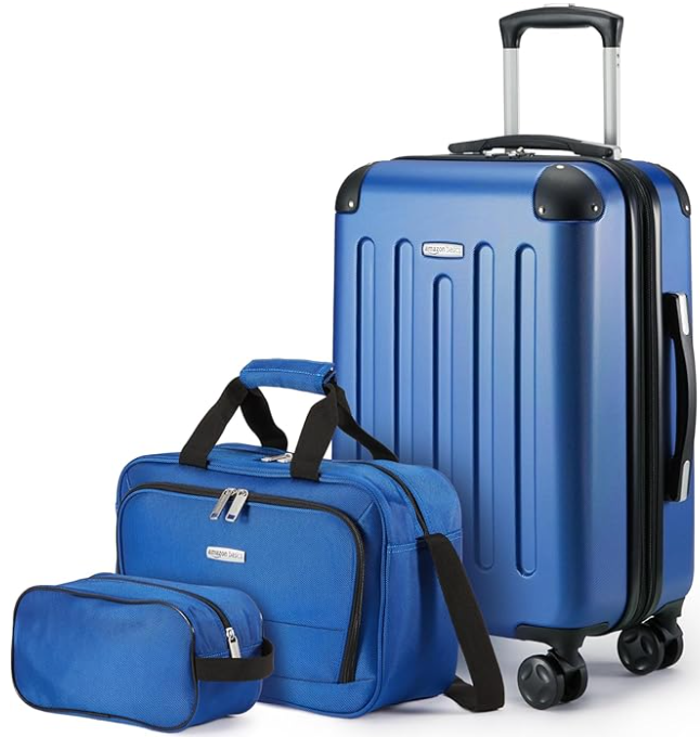 Basics 3-Piece Luggage Set, Including One Carry-On Luggage 22″ Expandable Suitcase , One 15-inch Tote Bag, and One 10-inch Compact Travel Bag-this might be the only set you need! Having smaller bag that fits onto the handle of your suitcase is such a great help when you are juggling a lot of items https://amzn.to/3KMSxEF